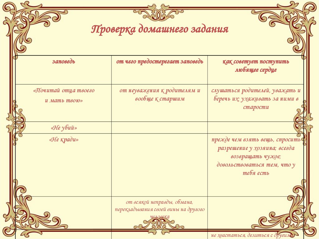 Проверка домашнего заданиязаповедь