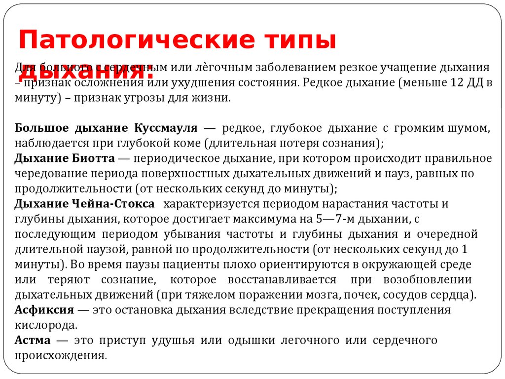 учащенное, ритмичное, поверхностное (тахипноэ - учащенное