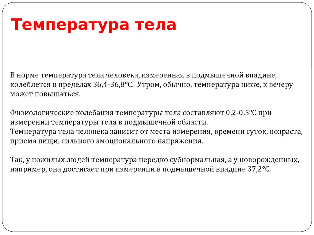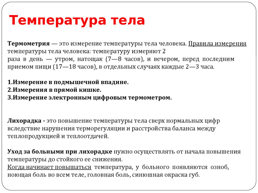 Температура телаТермометрия — это измерение температуры тела человека. Правила измерения