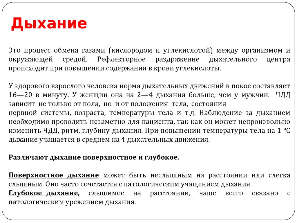 поверхностное дыхание свыше 20 ЧДД в минуту),