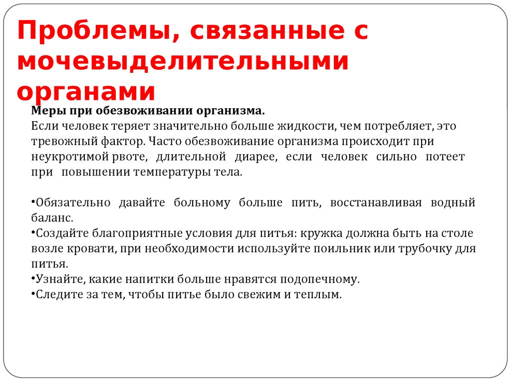 •Обязательно давайте больному больше пить, восстанавливая водный