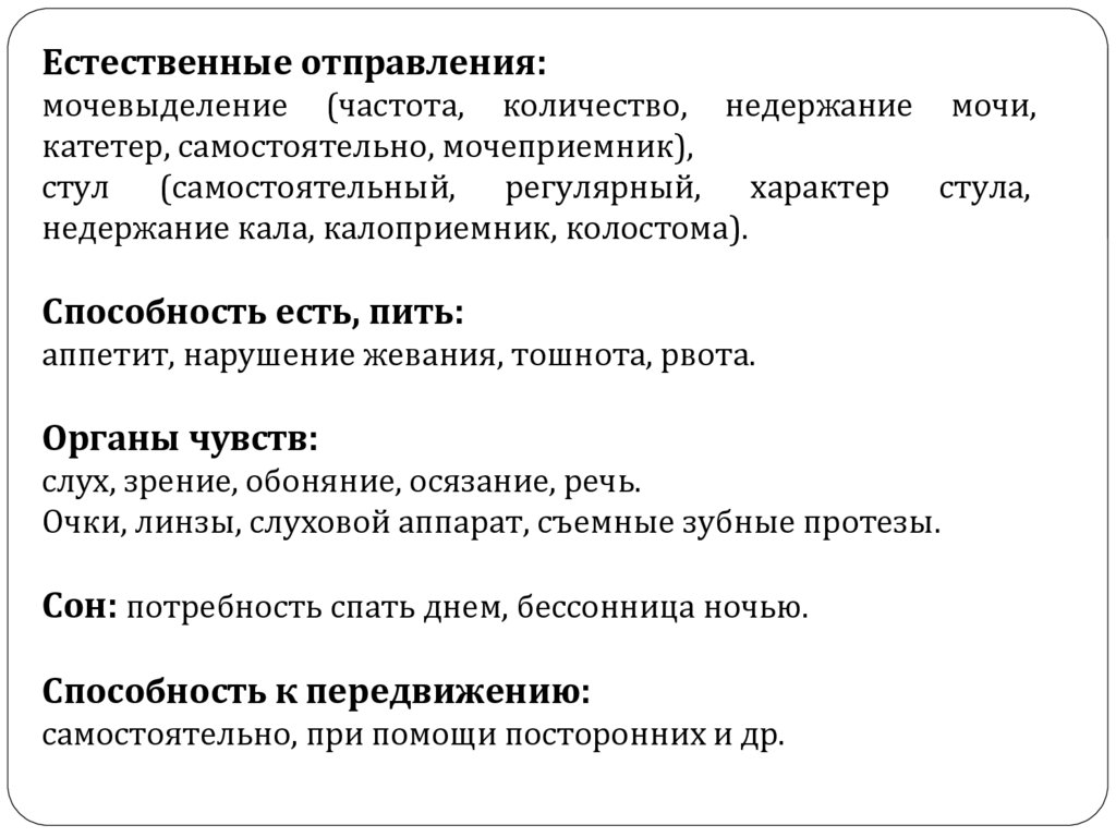 Естественные отправления:мочевыделение (частота, количество, недержание мочи,