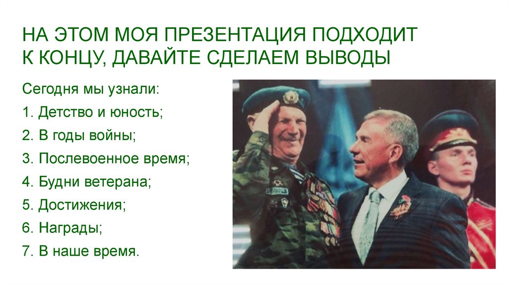 НА ЭТОМ МОЯ ПРЕЗЕНТАЦИЯ ПОДХОДИТК КОНЦУ, ДАВАЙТЕ СДЕЛАЕМ ВЫВОДЫ
