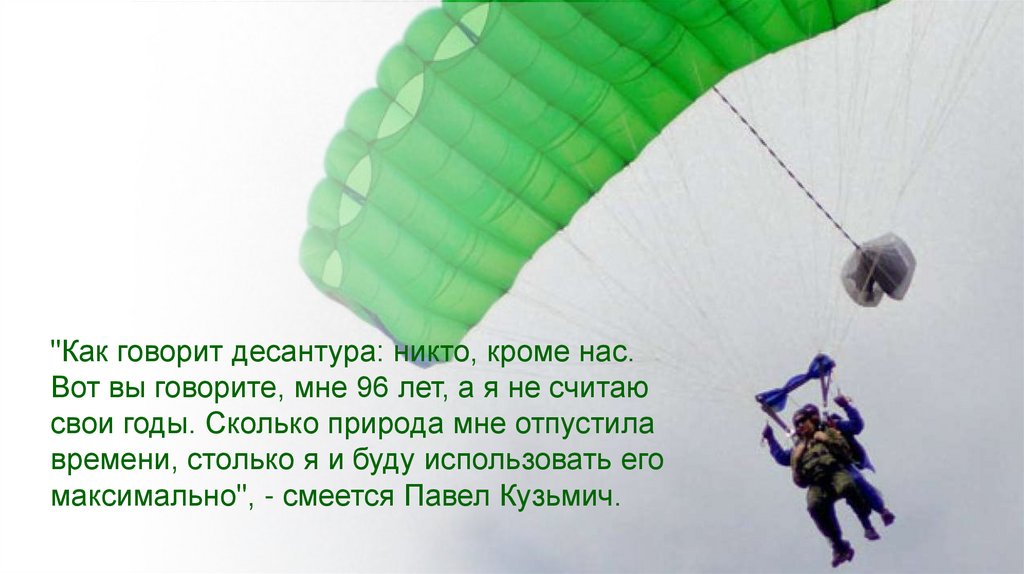 "Как говорит десантура: никто, кроме нас.Вот вы говорите, мне 96 лет, а я не считаю