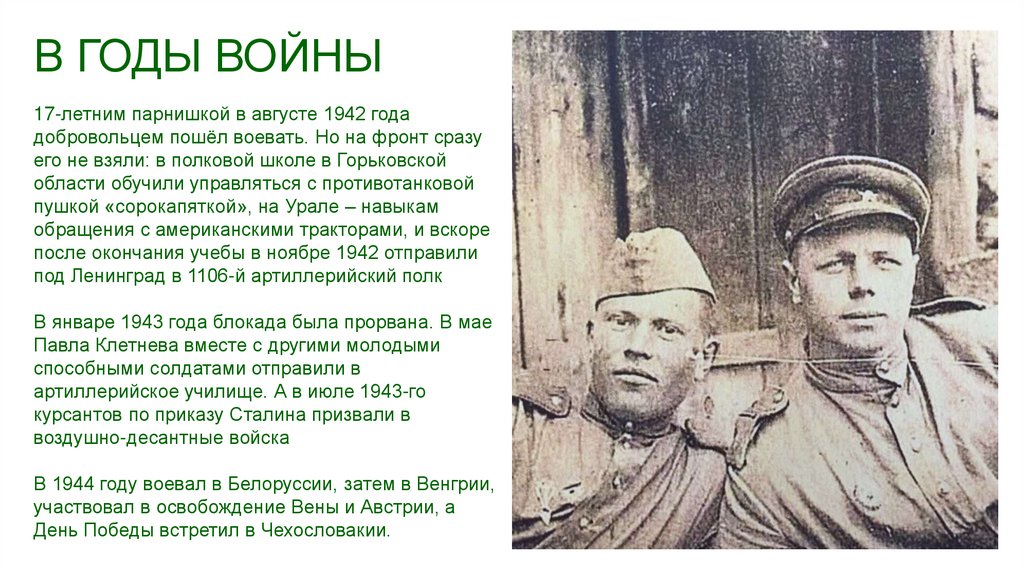 В ГОДЫ ВОЙНЫ17-летним парнишкой в августе 1942 года