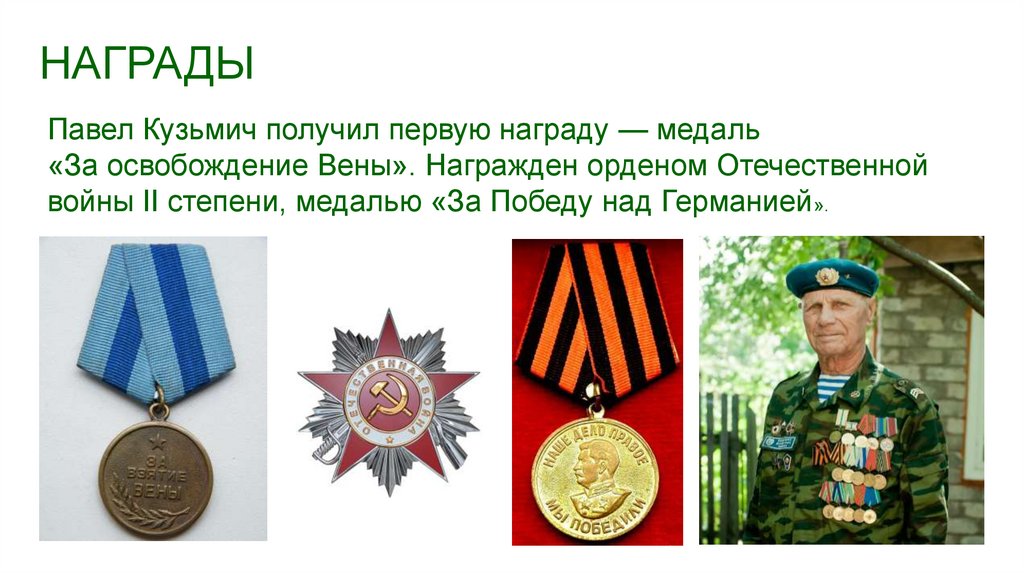 НАГРАДЫПавел Кузьмич получил первую награду — медаль