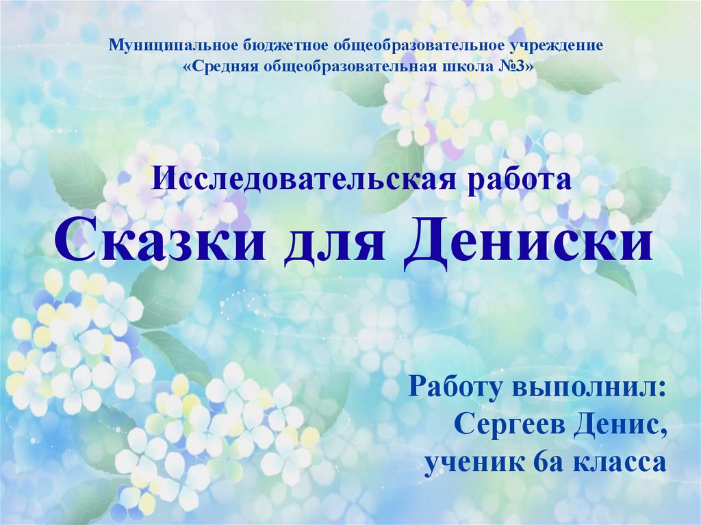 Муниципальное бюджетное общеобразовательное учреждение«Средняя общеобразовательная школа №3»