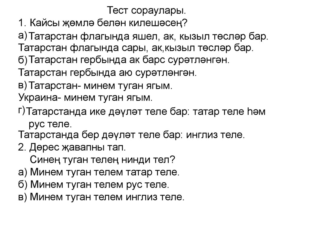 Тест сораулары.1. Кайсы җөмлә белән килешәсең?