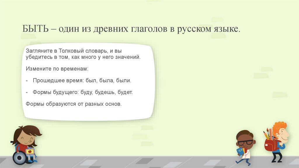 БЫТЬ – один из древних глаголов в русском языке.Загляните в Толковый словарь, и вы