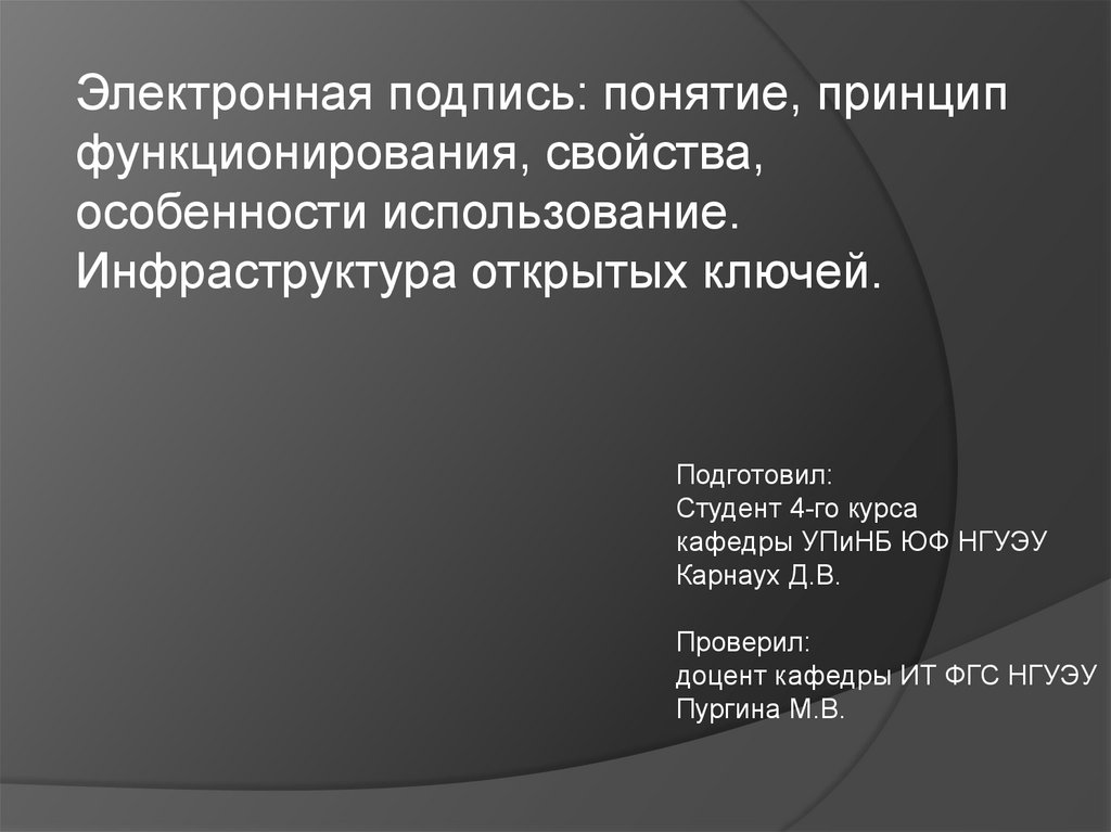 Электронная подпись: понятие, принцип функционирования, свойства, особенности использование. Инфраструктура открытых ключей