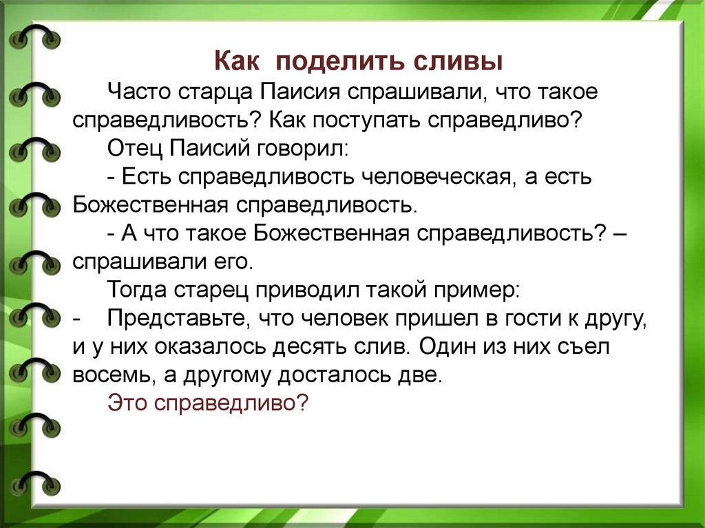 Как поделить сливыЧасто старца Паисия спрашивали, что такое
