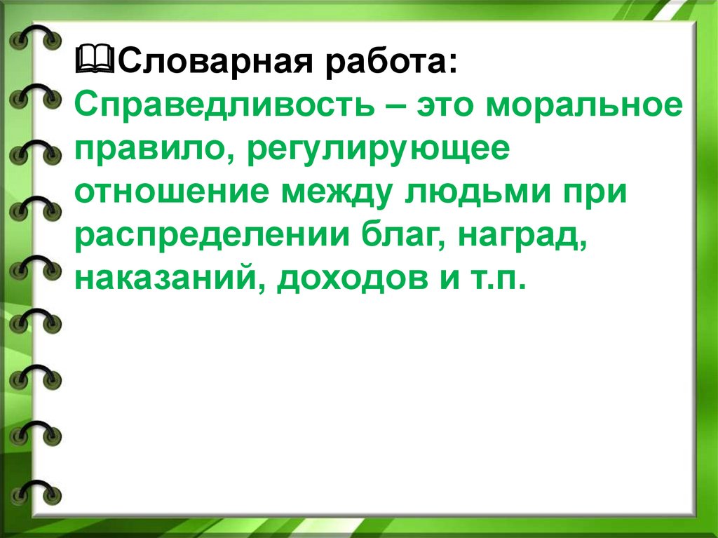 Словарная работа:Справедливость – это моральное