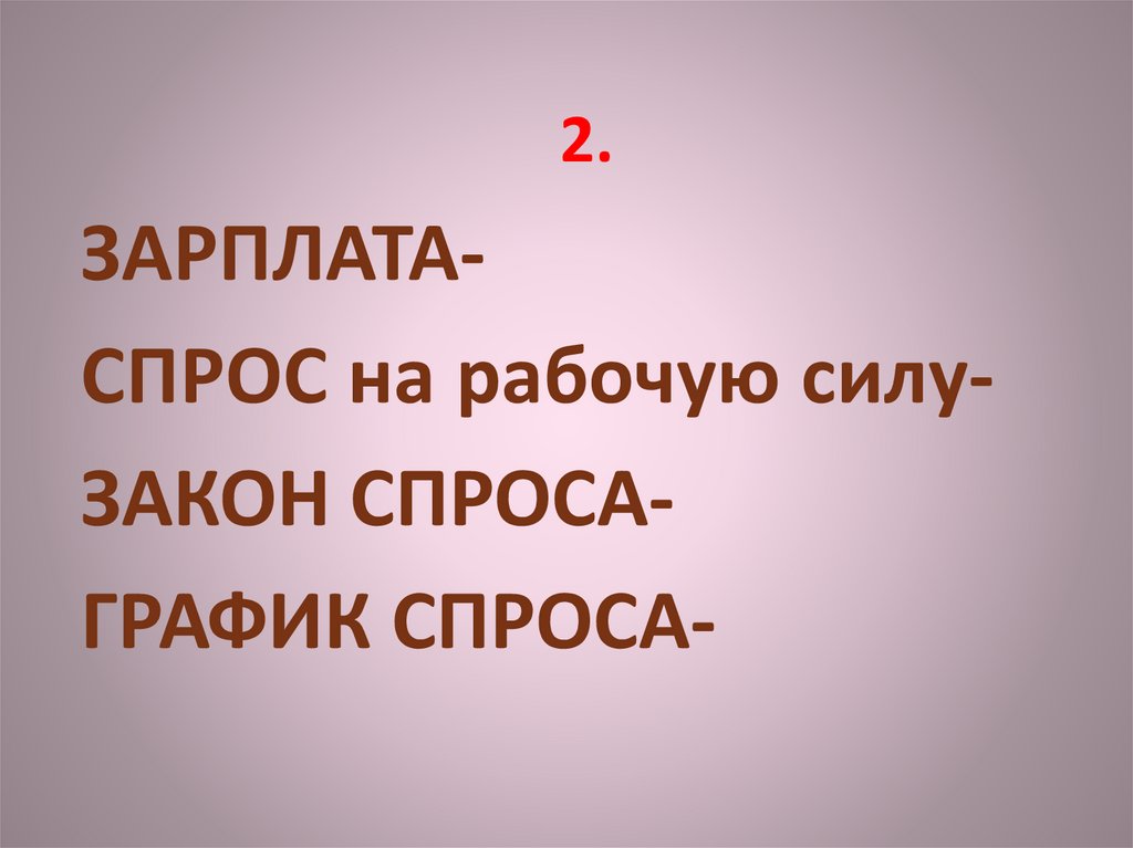 2.ЗАРПЛАТАСПРОС на рабочую силуЗАКОН СПРОСАГРАФИК СПРОСА-