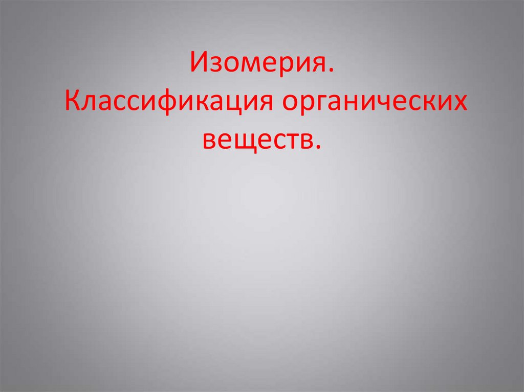 Изомерия. Классификация органических веществ
