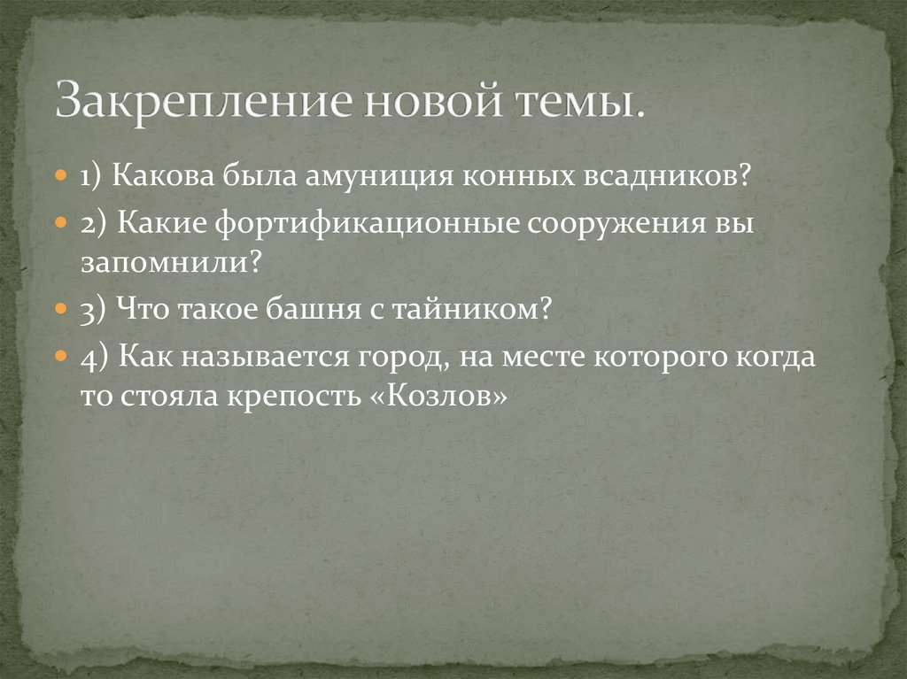 1) Какова была амуниция конных всадников?2) Какие фортификационные сооружения вы