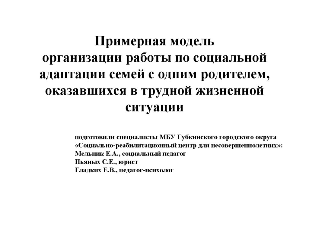 1. Примерная модель организации работы по социальной адаптации семей с одним родителем, оказавшихся в трудной жизненной ситуации