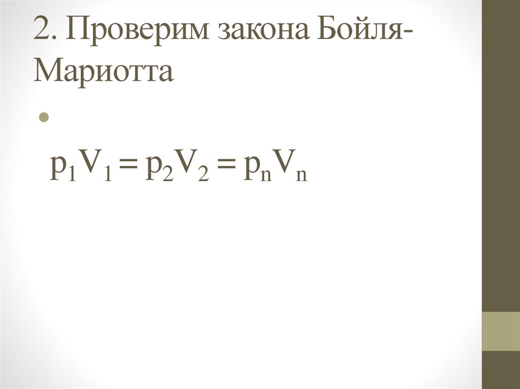 2. Проверим закона БойляМариоттаp1V1 = p2V2 = pnVn