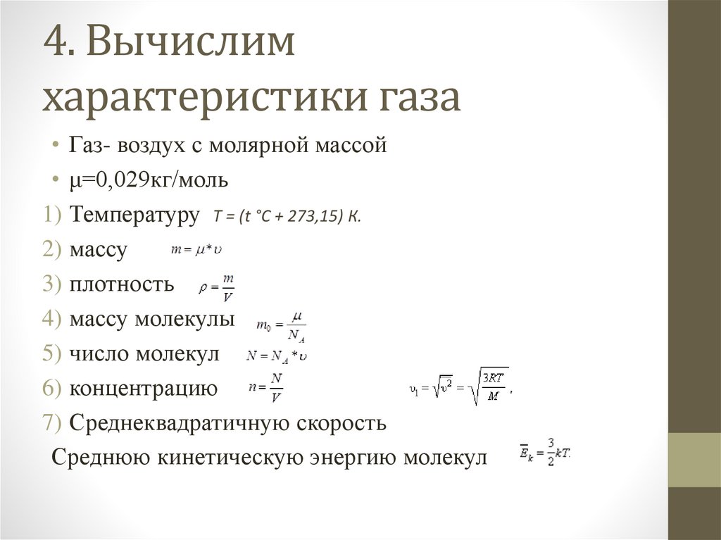 4. Вычислимхарактеристики газа