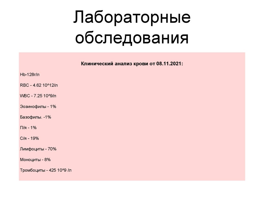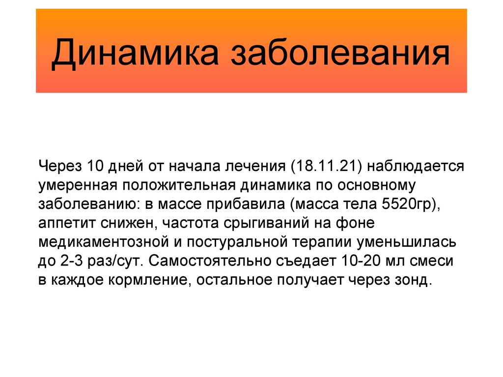 Динамика заболеванияЧерез 10 дней от начала лечения (18.11.21) наблюдается