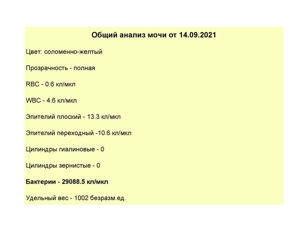 Общий анализ мочи от 14.09.2021Цвет: соломенно-желтый