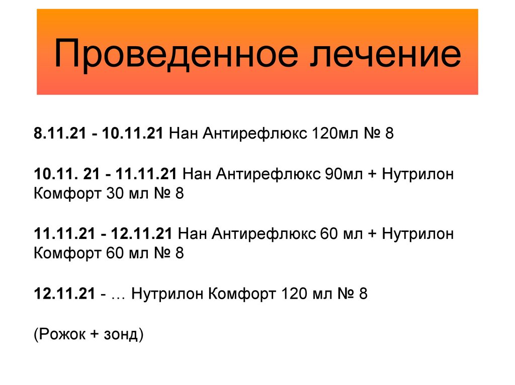 Проведенное лечение8.11.21 - 10.11.21 Нан Антирефлюкс 120мл № 8