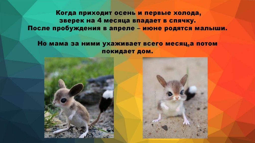 Когда приходит осень и первые холода,зверек на 4 месяца впадает в спячку.