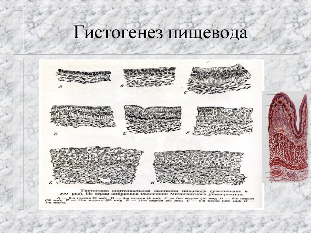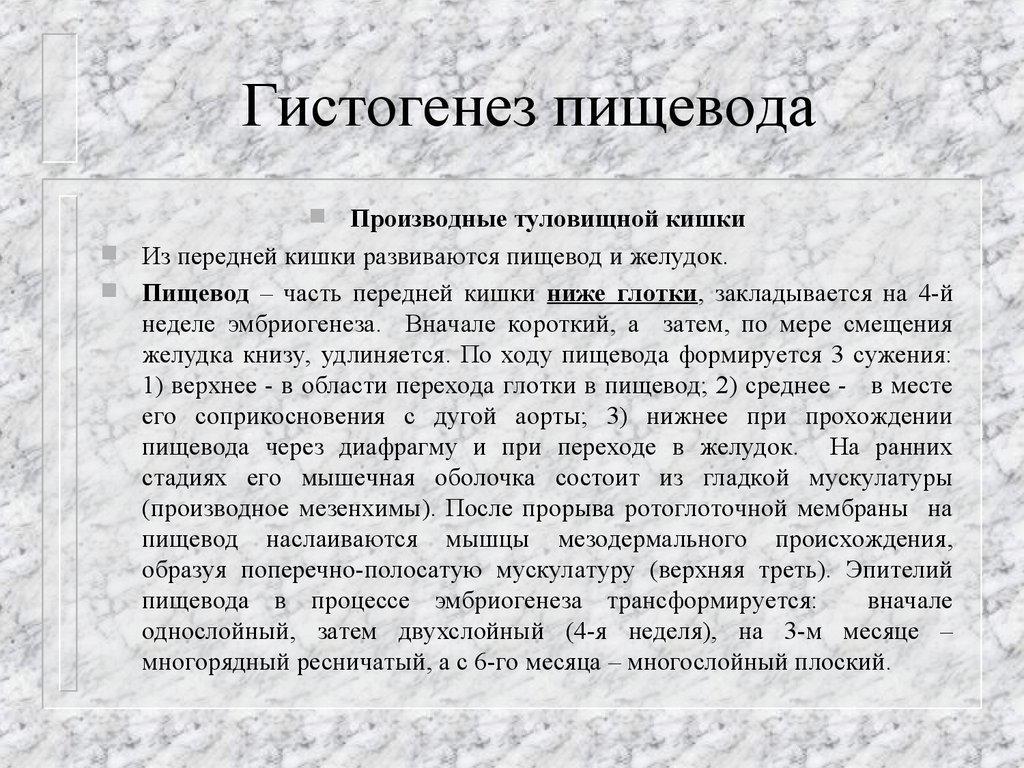 Пищевод – часть передней кишки ниже глотки, закладывается на 4-й