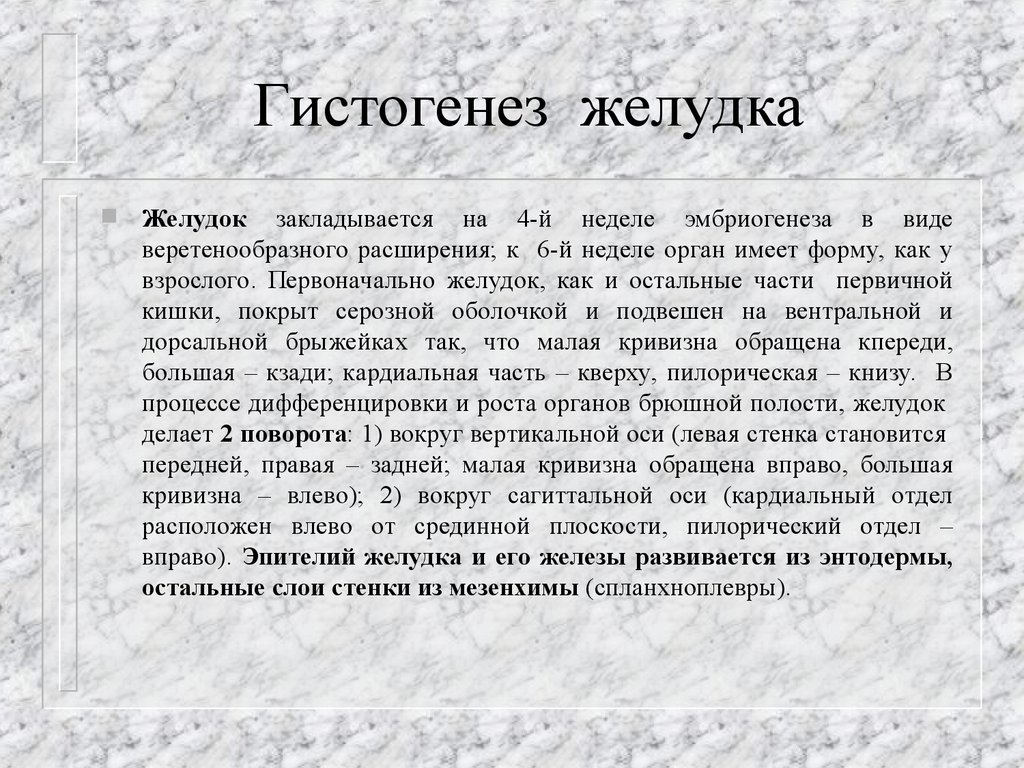 Гистогенез желудкаЖелудок закладывается на 4-й неделе эмбриогенеза в виде