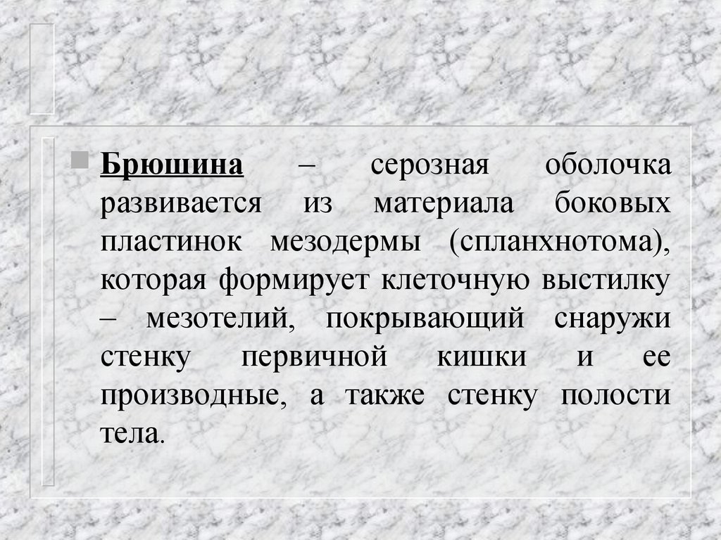 остальные слои стенки из мезенхимы (спланхноплевры).