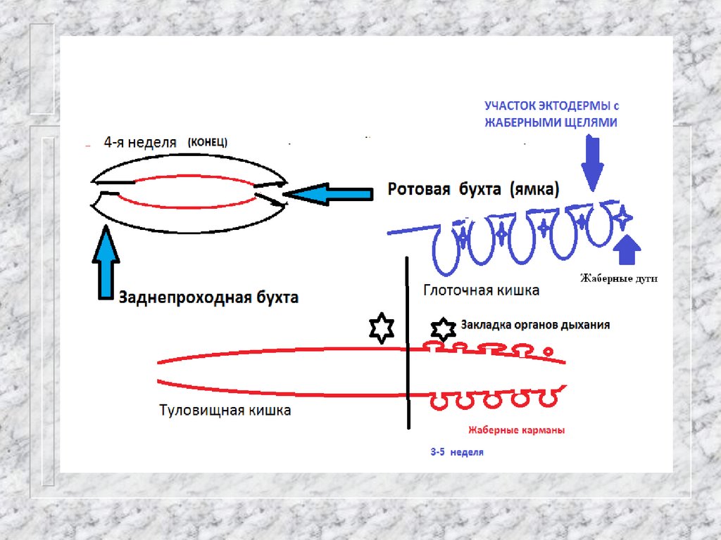 С 4-й недели эмбрионального развития формируются отделы пищеварительного тракта[3]: