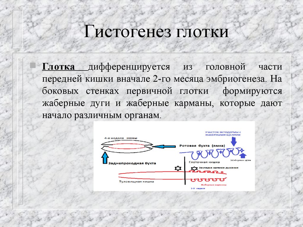 Гистогенез глоткиГлотка дифференцируется из головной части