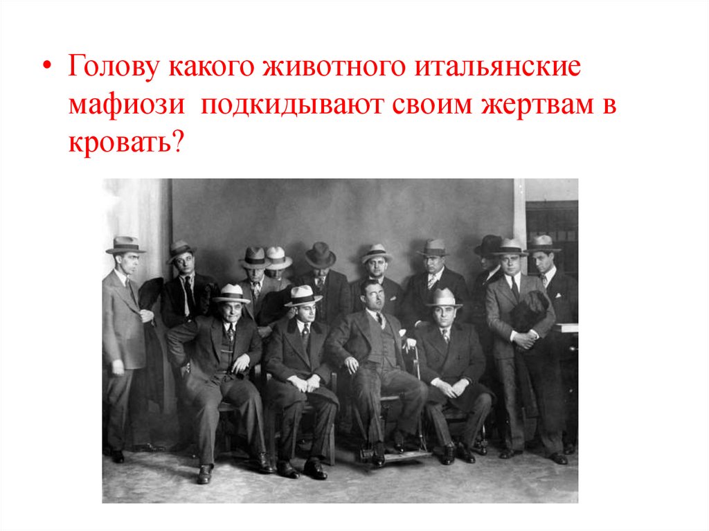 • Голову какого животного итальянскиемафиози подкидывают своим жертвам в