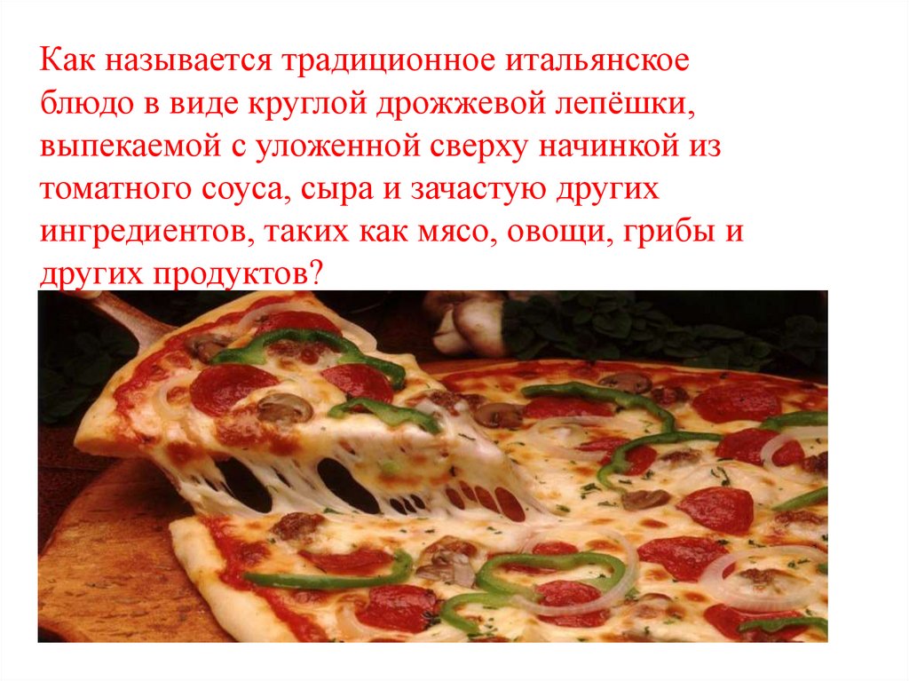 Как называется традиционное итальянскоеблюдо в виде круглой дрожжевой лепёшки,