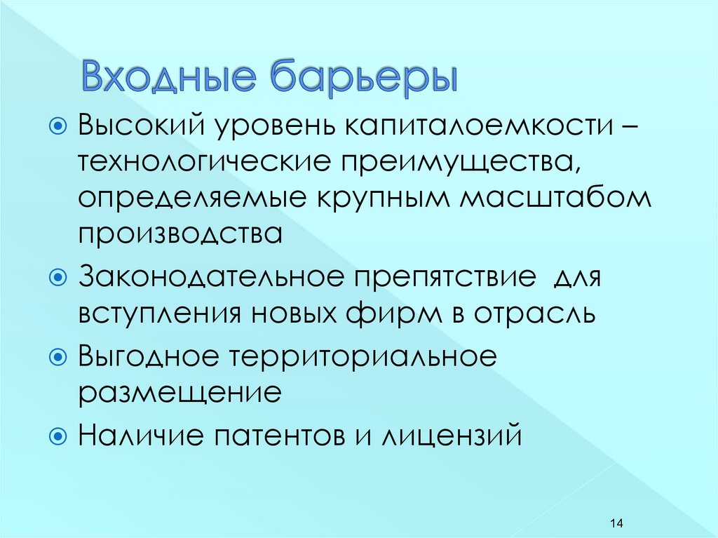 2) наличие барьеров проникновения в