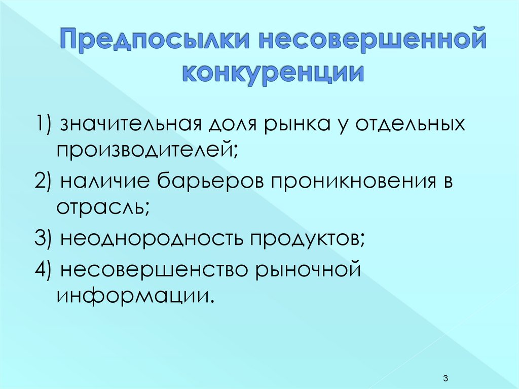 1) значительная доля рынка у отдельныхпроизводителей;
