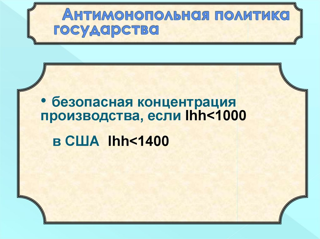 • безопасная концентрацияпроизводства, если Ihh<1000