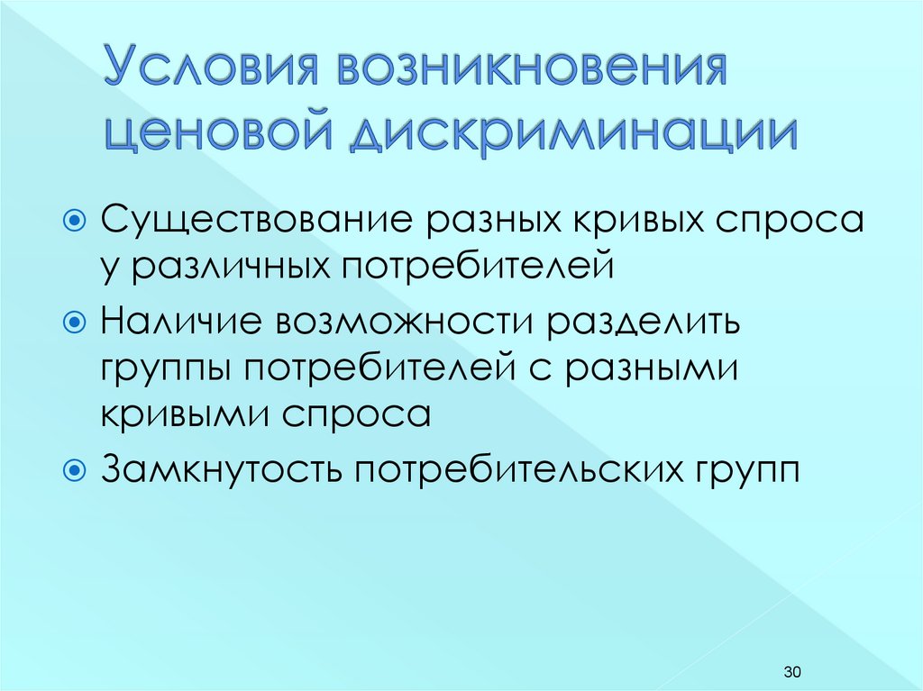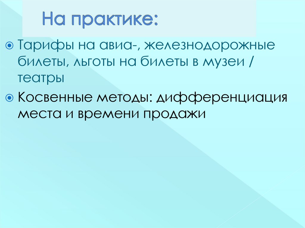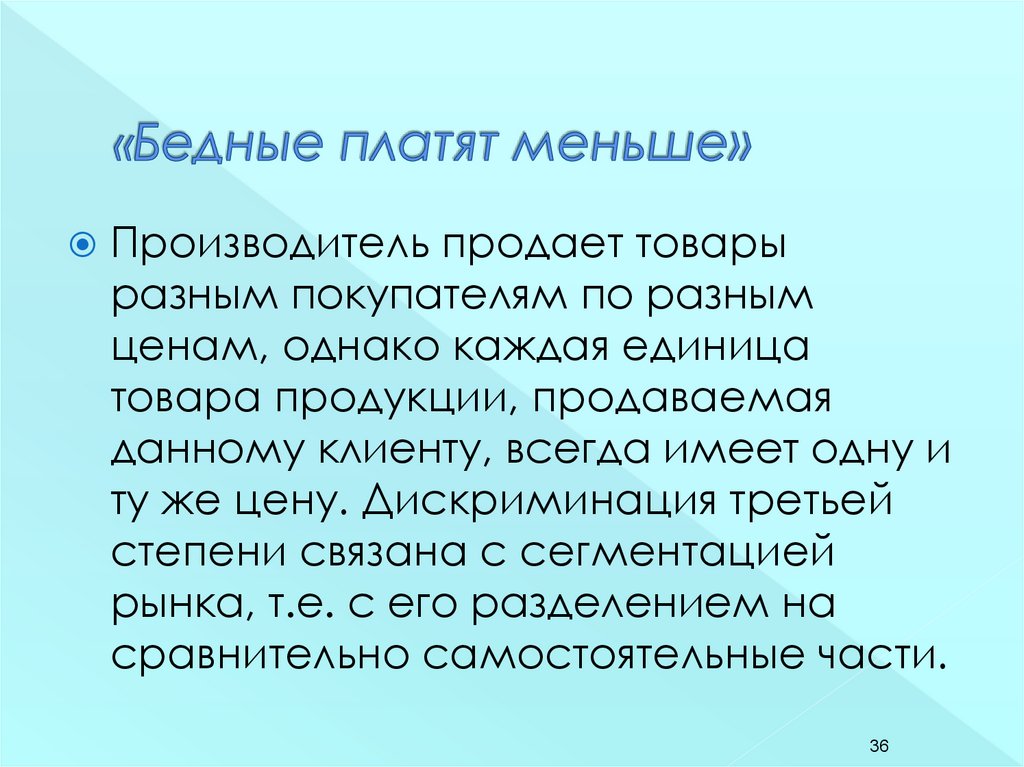 Ценовая дискриминация – продажаодинаковых товаров или услуг по