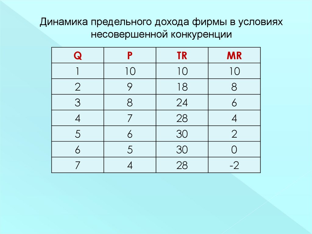 Динамика предельного дохода фирмы в условияхнесовершенной конкуренции