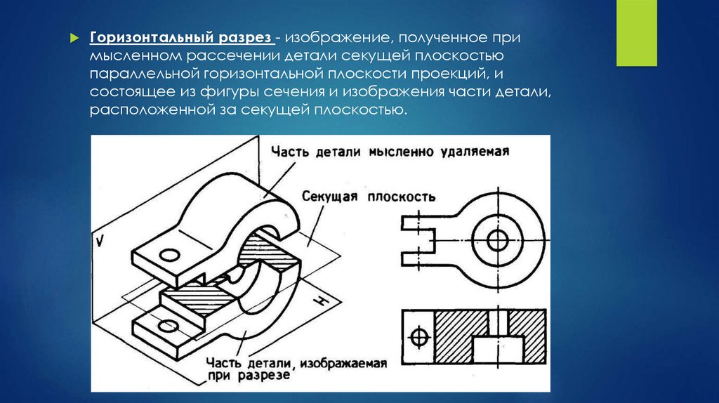 Горизонтальный разрез - изображение, полученное примысленном рассечении детали секущей плоскостью
