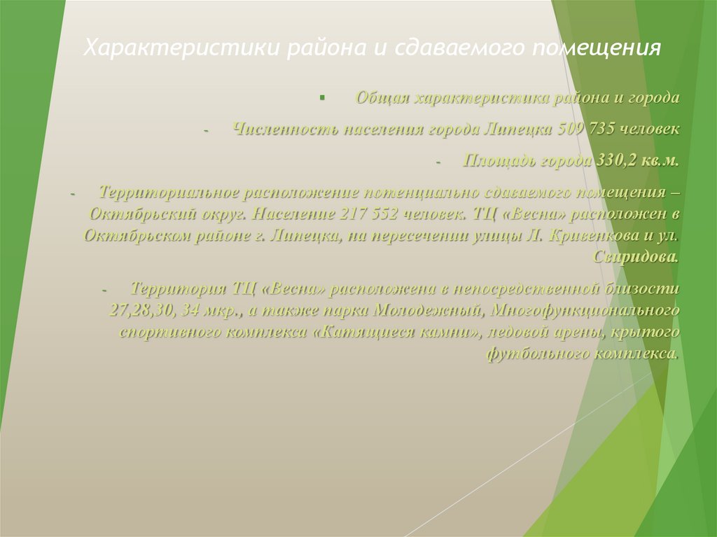 Характеристики района и сдаваемого помещения-