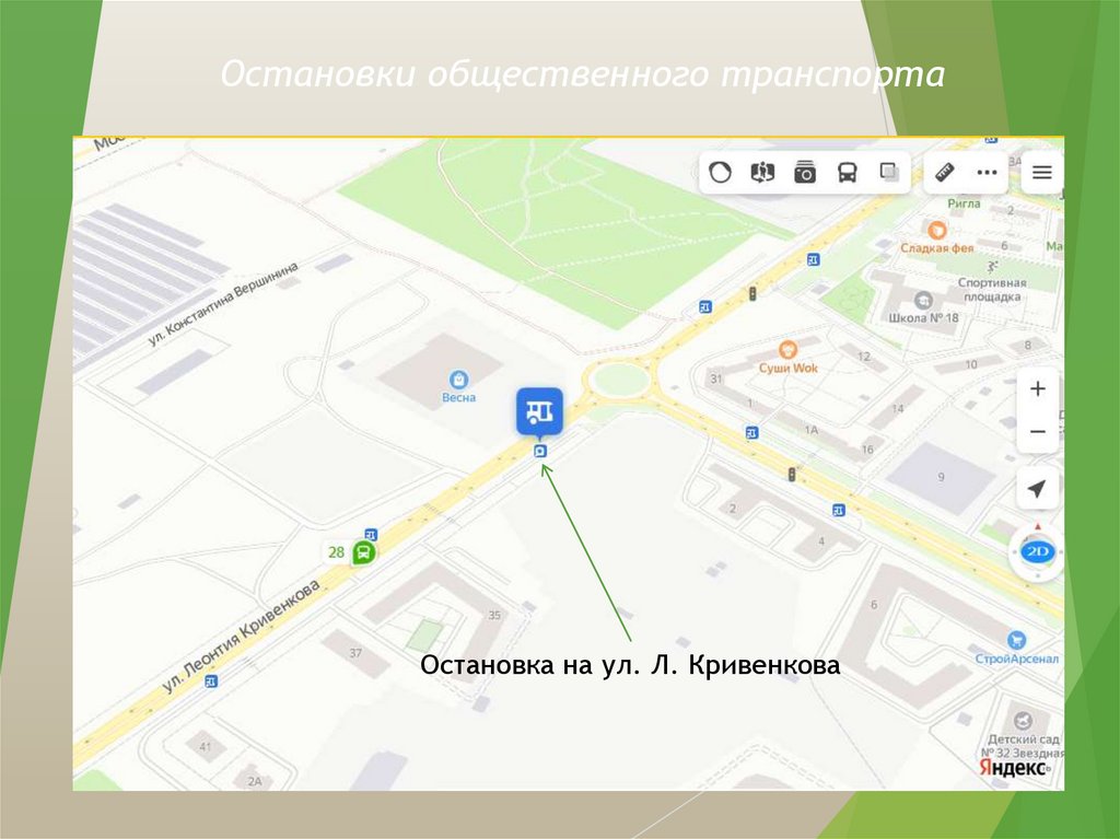 Остановки общественного транспортаОстановка на ул. Л. Кривенкова