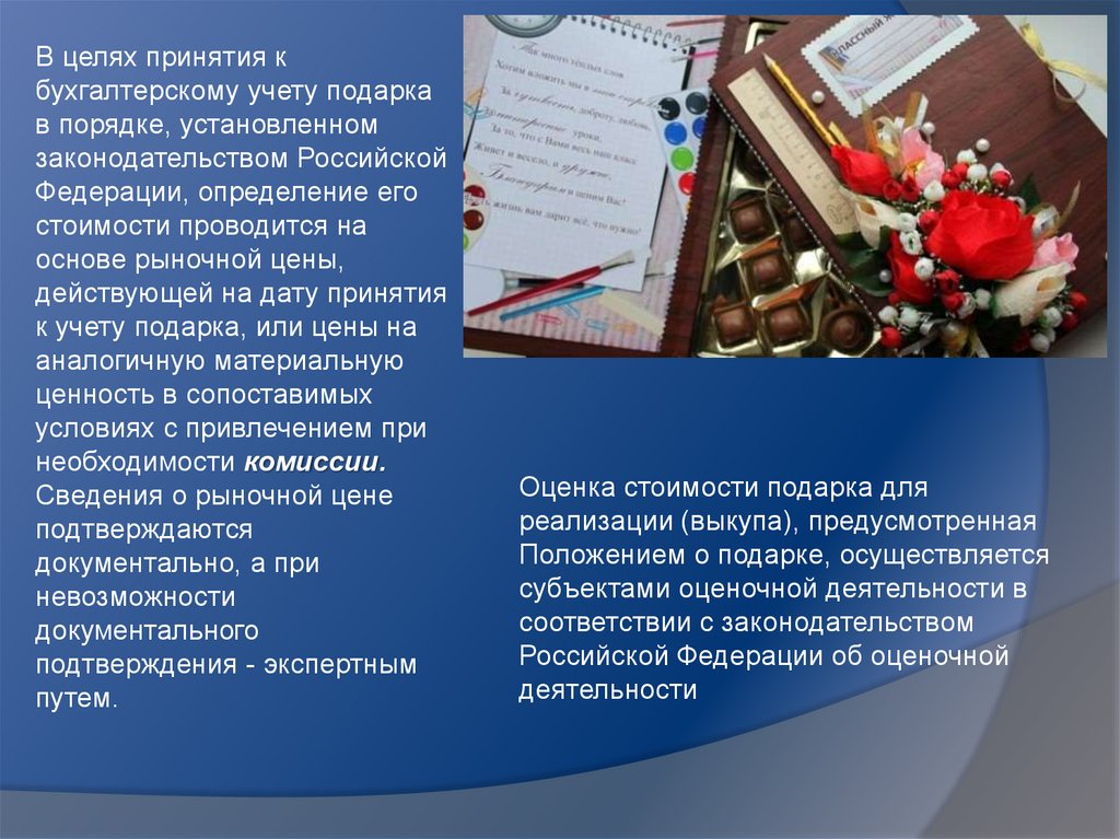 В целях принятия кбухгалтерскому учету подарка