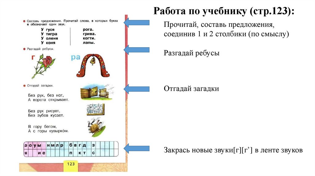 Работа по учебнику (стр.123):Прочитай, составь предложения,