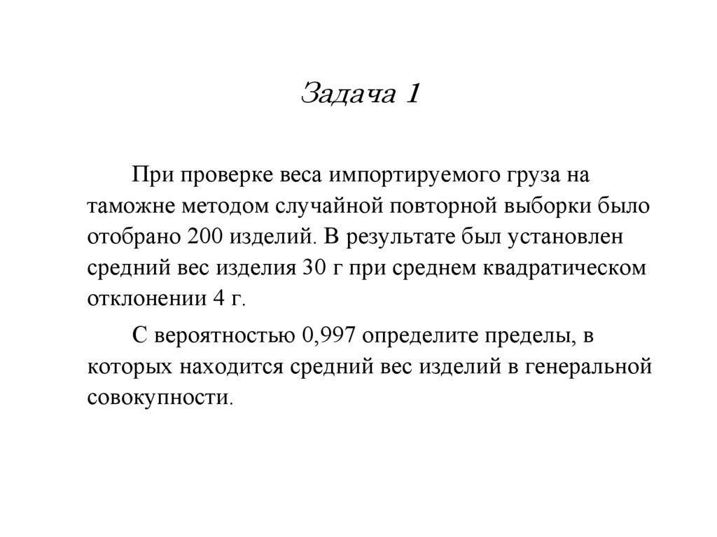При проверке веса импортируемого груза натаможне методом случайной повторной выборки было