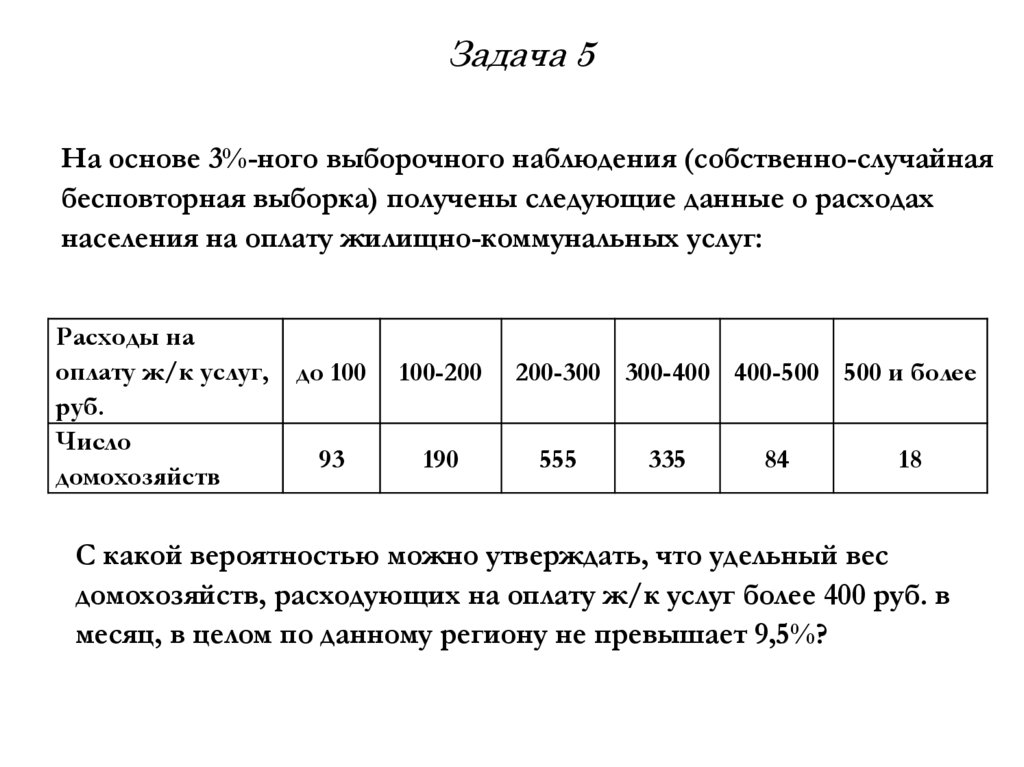 Задача 5На основе 3%-ного выборочного наблюдения (собственно-случайная