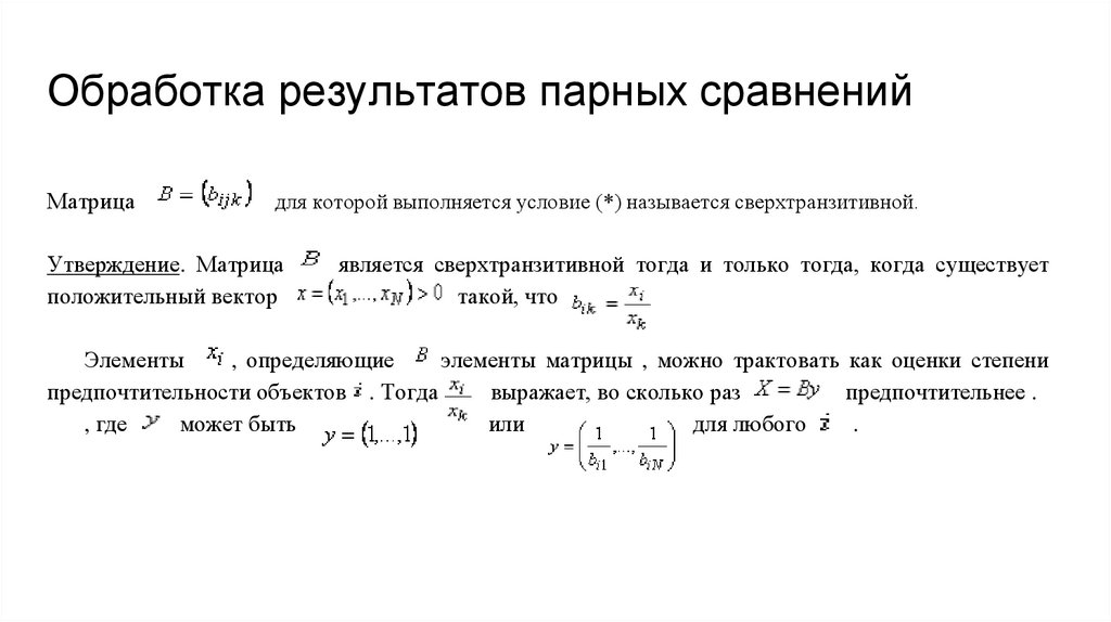Обработка результатов парных сравненийМатрица