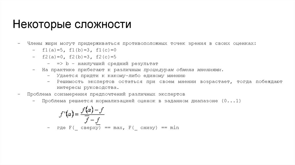 - Проблема решается нормализацией оценок в заданном диапазоне (0...1)