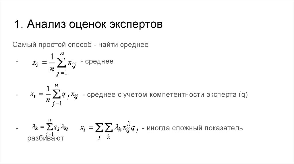 1. Анализ оценок экспертовСамый простой способ - найти среднее
