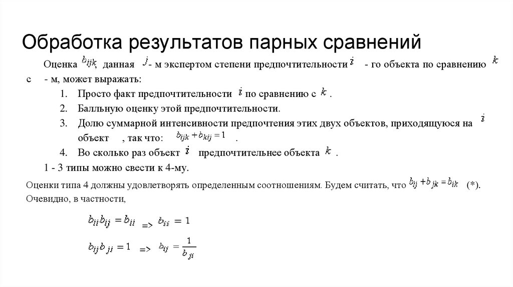 Оценки типа 4 должны удовлетворять определенным соотношениям. Будем считать, что
