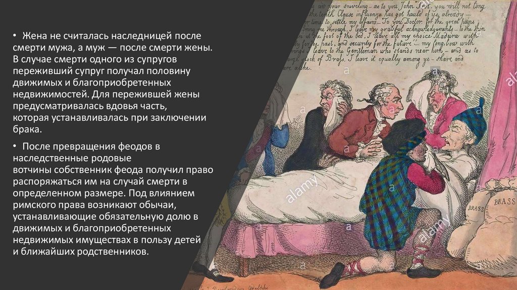 • Жена не считалась наследницей послесмерти мужа, а муж — после смерти жены.